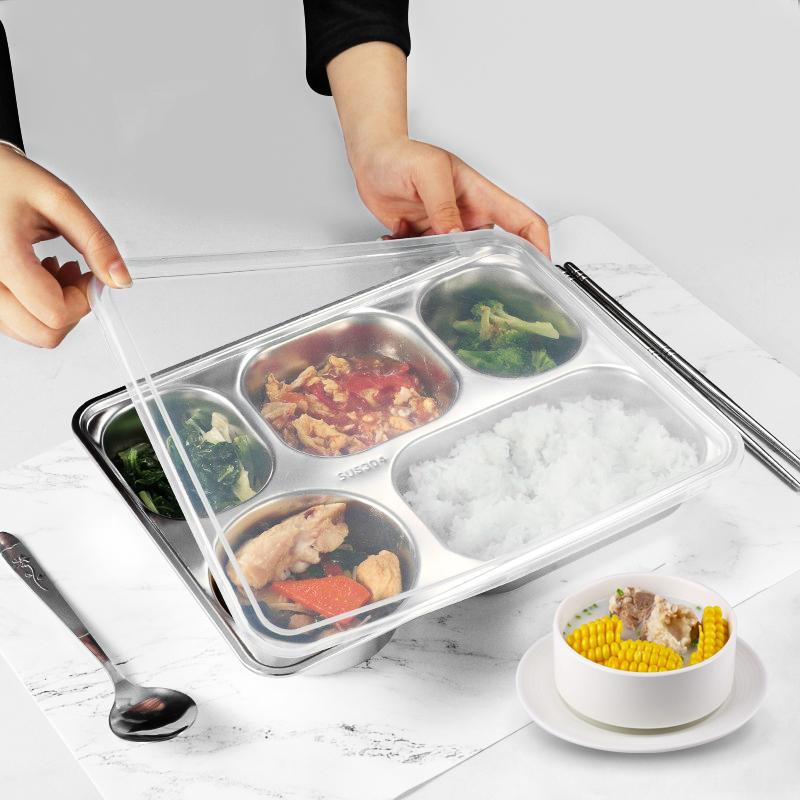 Обеденная тарелка из нержавеющей стали, разделенный поднос для обеда с крышкой, контейнер для хранения продуктов, детский поднос для школьной столовой, кухонная утварь