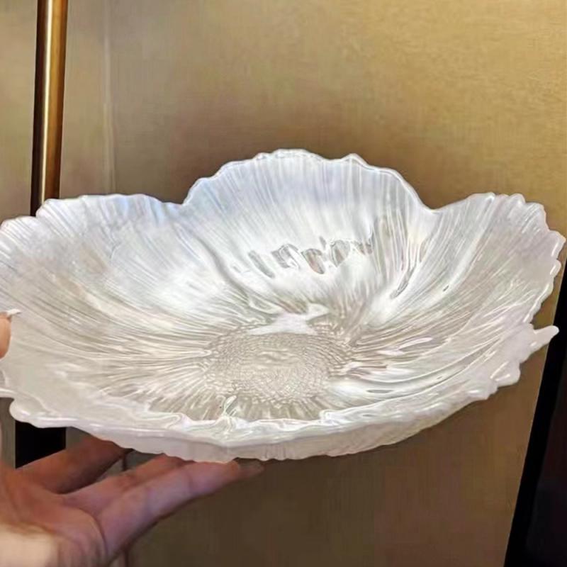 Фруктовая тарелка в форме цветка в скандинавском стиле, бытовая хрустальная стеклянная перламутровая белая тарелка для хранения закусок, большая емкость
