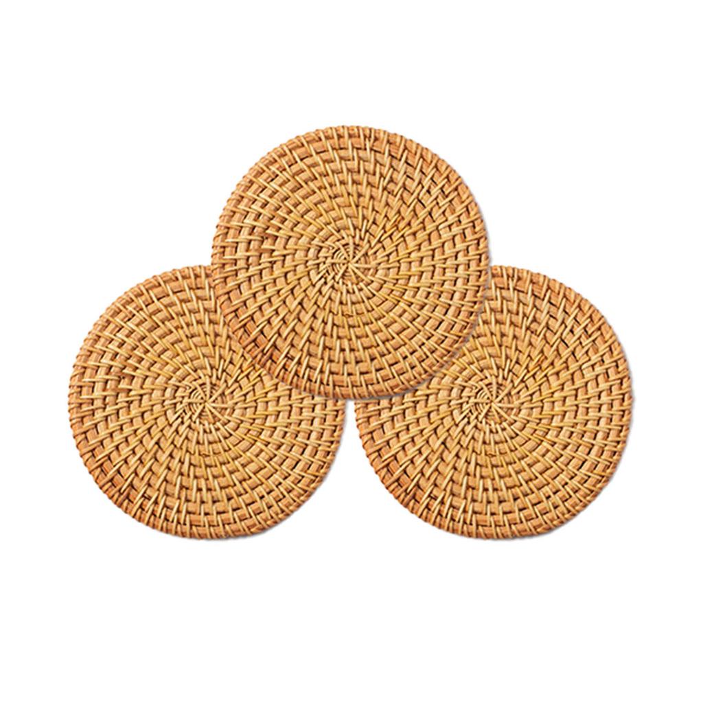 3 шт. Подставка под чашку из ротанга, плетеная вручную, 8-35 см, круглая, подставка под стол из ротанга, нескользящая, термостойкая, подставка под кружку для напитков, подставки под кофе для столовой