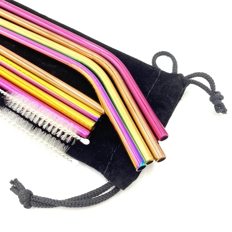 8 шт. металлических многоразовых трубочек из нержавеющей стали 304, прямые изогнутые трубочки для питья с щеткой для чистки мешка, аксессуар для бара на вечеринку — купить товар онлайн с бесплатной доставкой по всему миру!