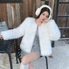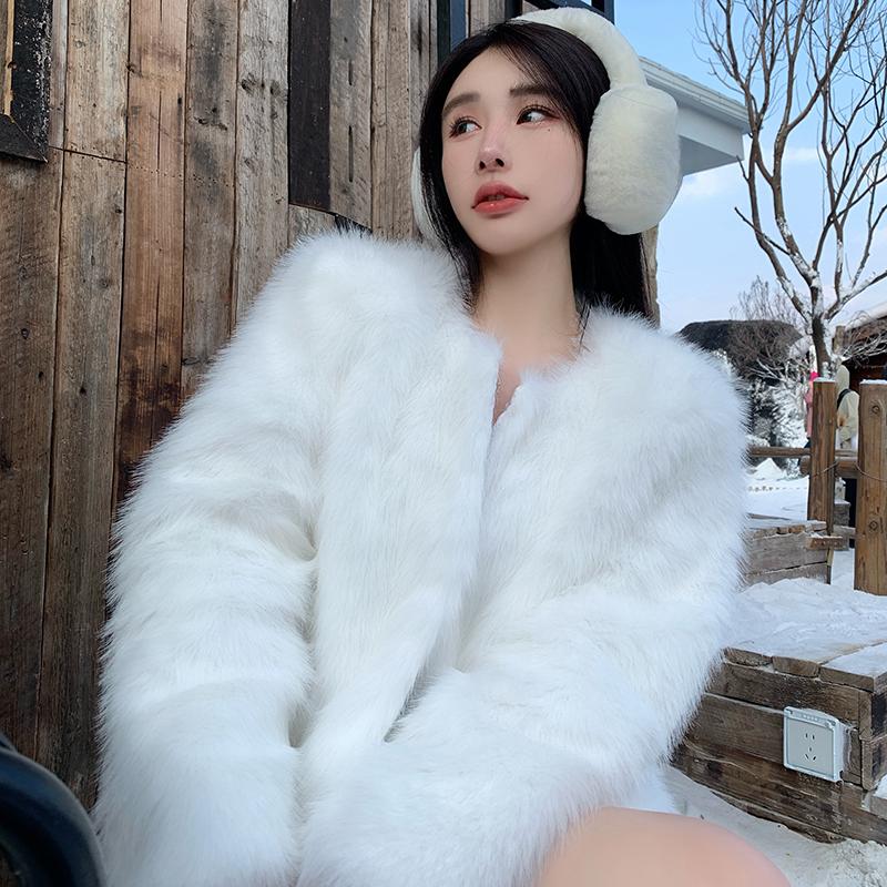 Осенне-зимние теплые пальто из лисьего меха с длинным рукавом, женские винтажные элегантные свободные куртки с круглым вырезом, женские однотонные повседневные женские куртки верхней одежды 25519