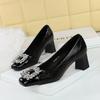 Женские туфли на толстом каблуке, средний каблук, квадратный носок, вставки из стразов для эффекта похудения, одинарная пряжка из стразов