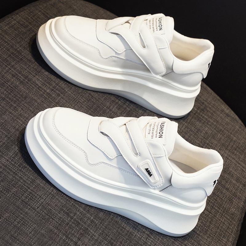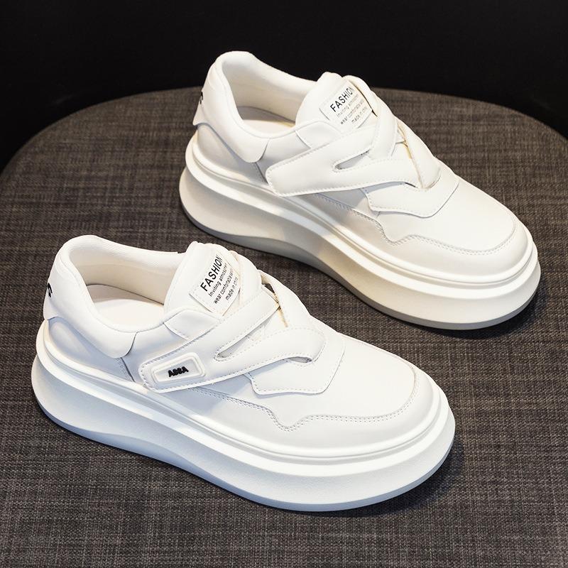 Туфли белые женские из натуральной кожи на толстой подошве для спорта и отдыха на доске