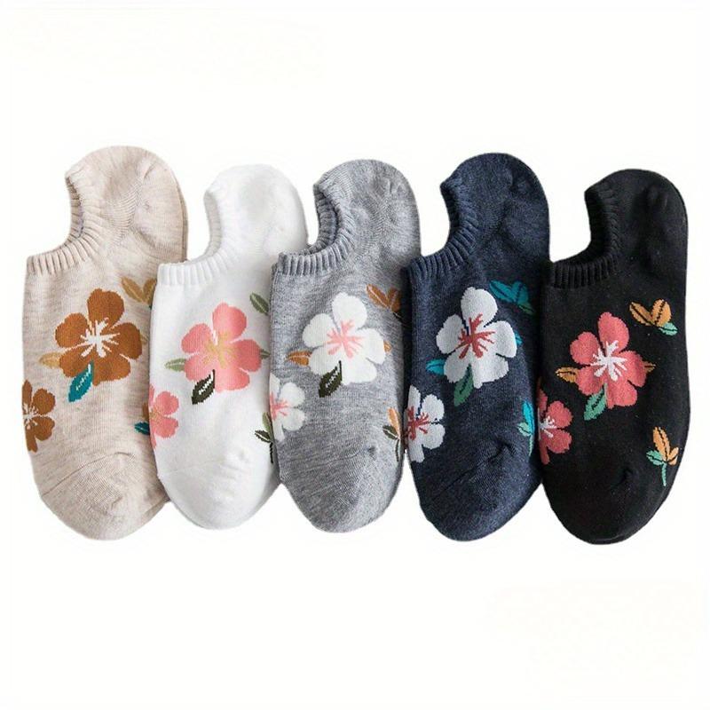 Хлопковые носки для женщин, невидимые повседневные носки, носки с коротким носком, женские носки с весенним цветком
