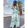 Модное женское весеннее длинное платье с принтом, V-образным вырезом и длинными рукавами в стиле темперамент