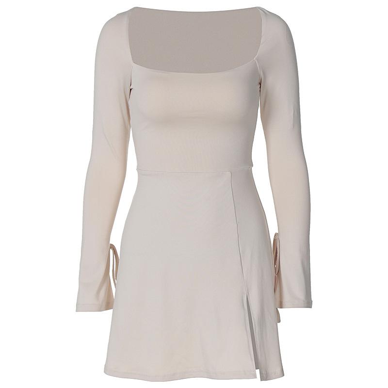 Женское весенне-летнее модное сексуальное платье с квадратным вырезом, облегающим, с высокой талией, расклешенными рукавами и разрезом