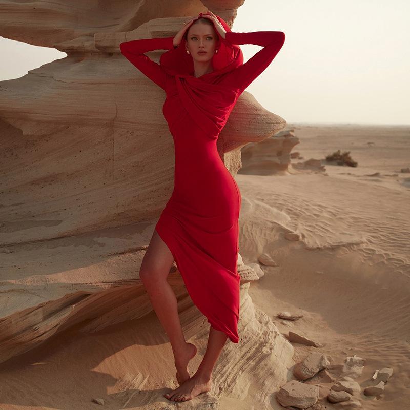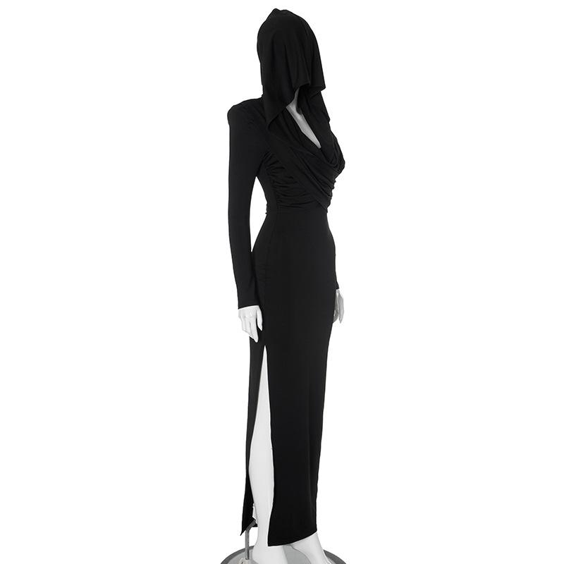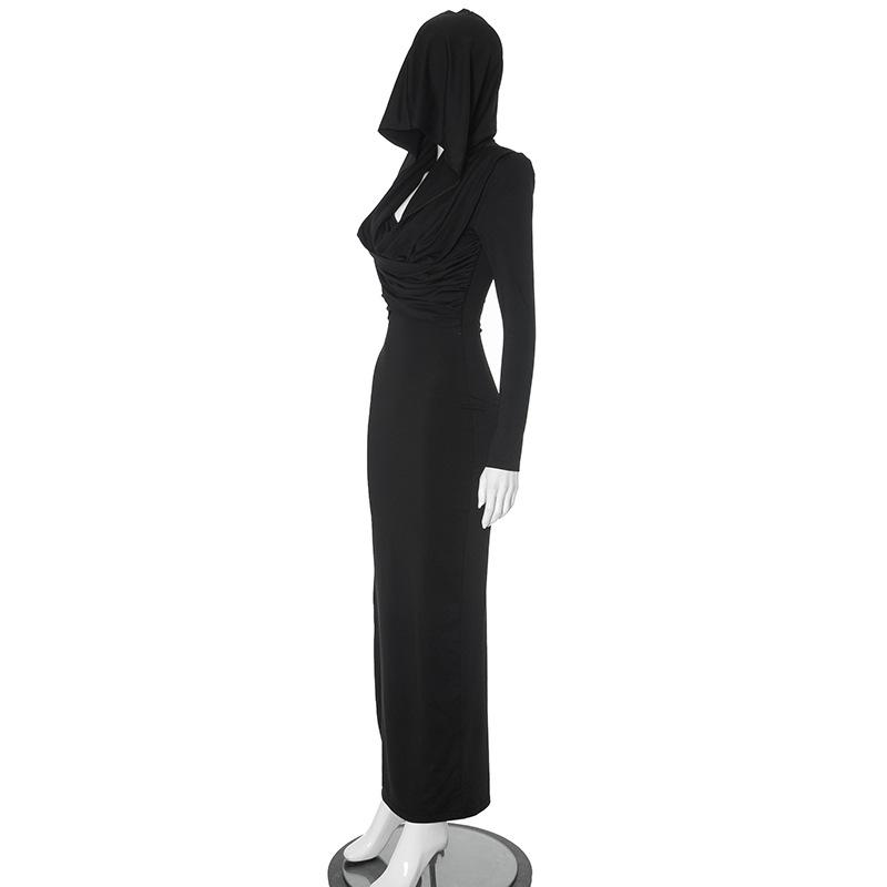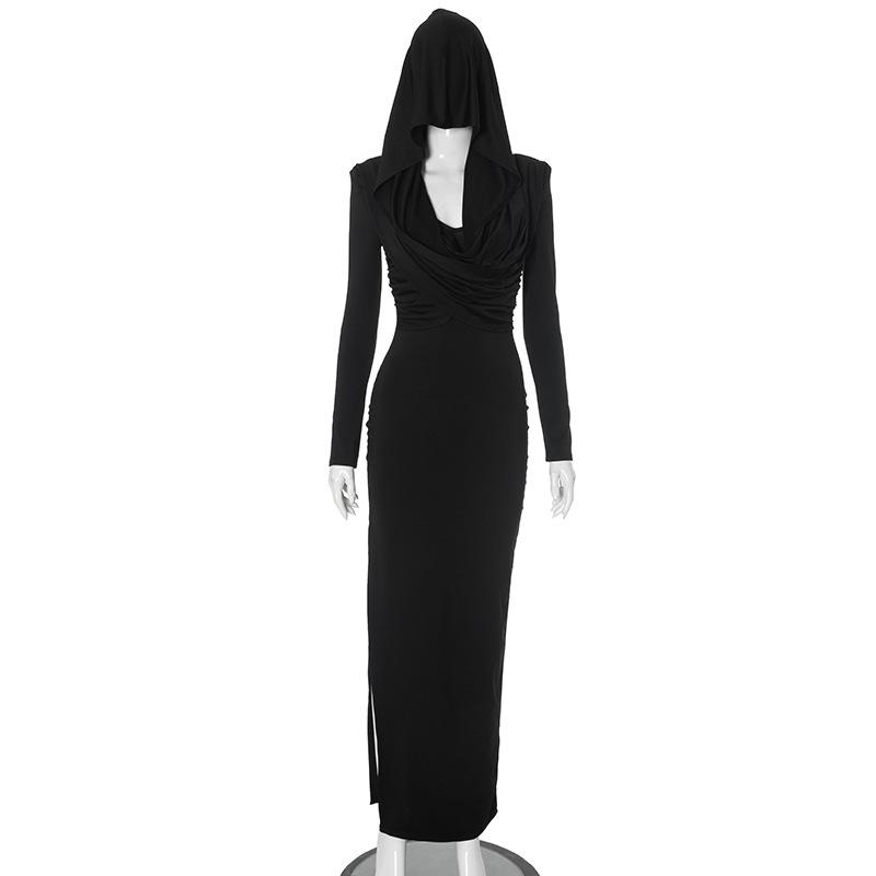 Женское осеннее модное однотонное платье-бейсболка с длинными рукавами и боковыми разрезами, длинное платье