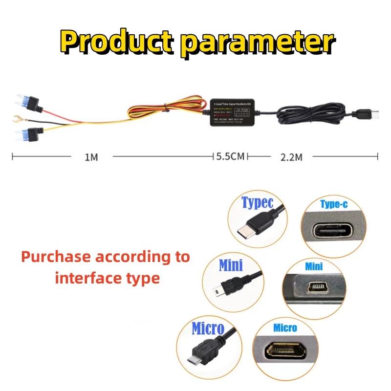 Круглосуточный мониторинг парковки Автомобильный видеорегистратор Видеорегистратор Камера Комплект жесткого монтажа для защиты от низкого напряжения Мини USB порт 12-30 В в 5 В 2,5 А Автомобильные аксессуары