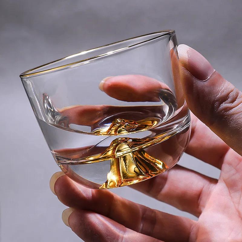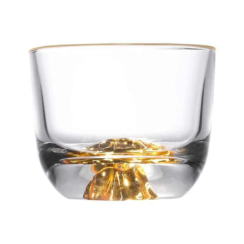 110 мл 4 унции прозрачные маленькие стеклянные стаканы для спиртного соджу с золотым ободком и полукруглым дном в форме горы, чашка для чая Kong Fu Master