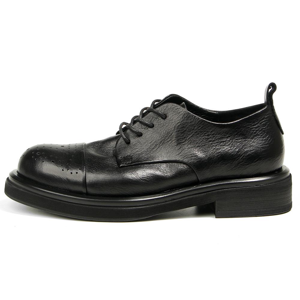 66-2 Британские трехшарнирные мужские туфли Резные модные повседневные кожаные туфли Первый слой коровьей кожи Ретро туфли ручной работы на старой платформе