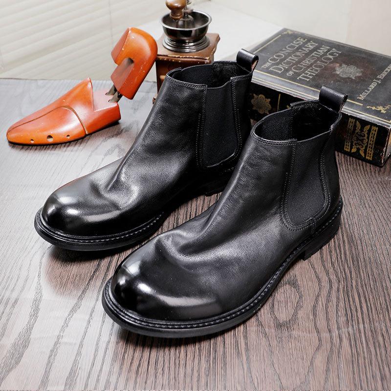 Ботинки «Челси» в британском стиле, мужские туфли из коровьей кожи на платформе, высокие, с одной педалью, короткие, с круглым носком, кожаные, дышащие