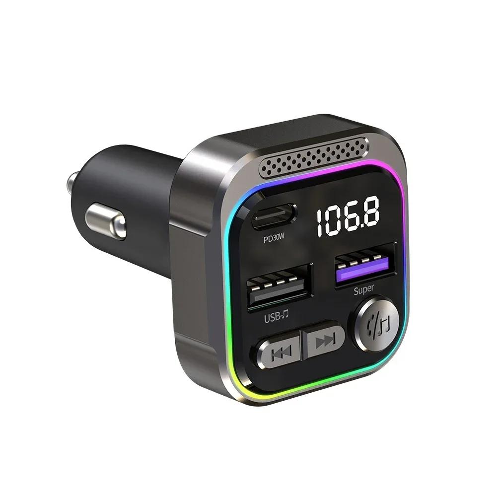 Автомобильный Bluetooth-адаптер для музыки, FM-передатчик, приемник, автомобильный комплект, MP3-аудиоплеер, громкая связь, PD 30 Вт, быстрое зарядное устройство с атмосферным освещением