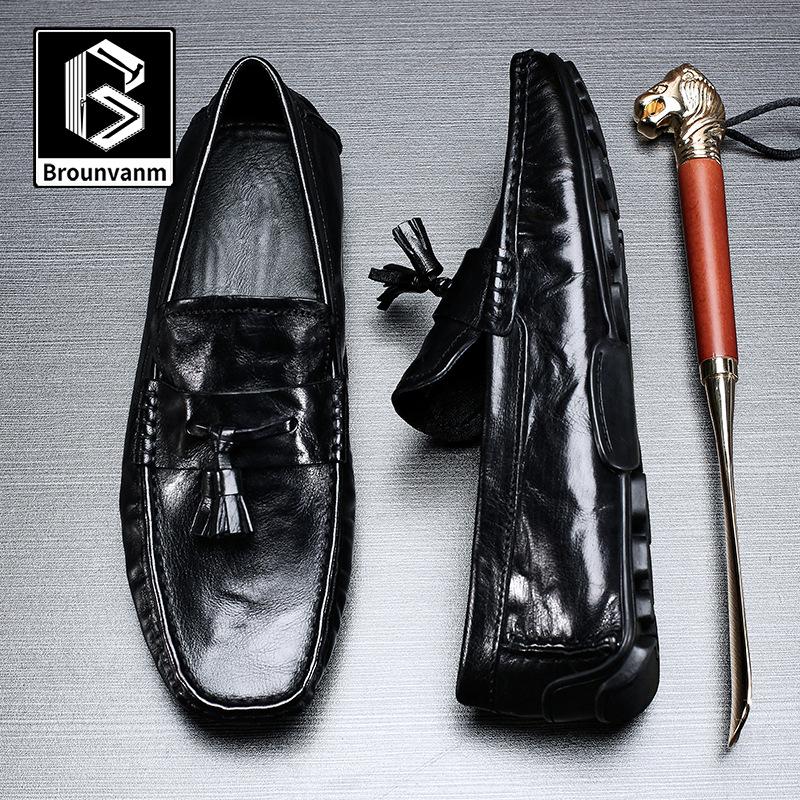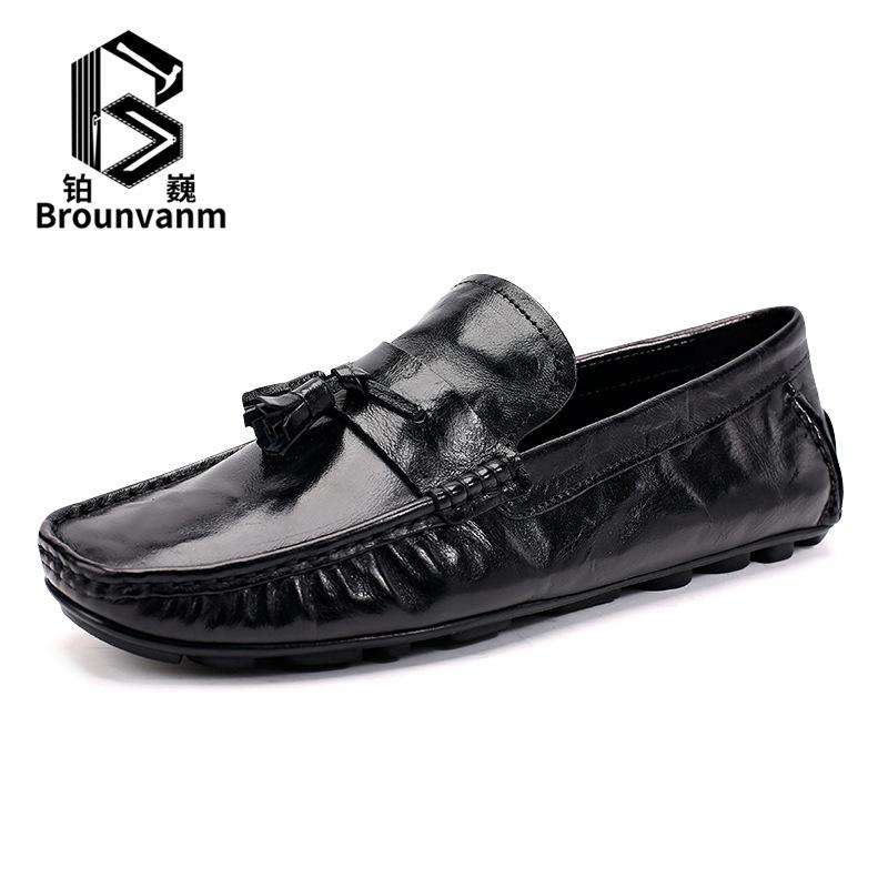 Мужская обувь Bowei из натуральной кожи Повседневная кожаная обувь Мужская обувь Doudou One Pedal Lazy Loafers