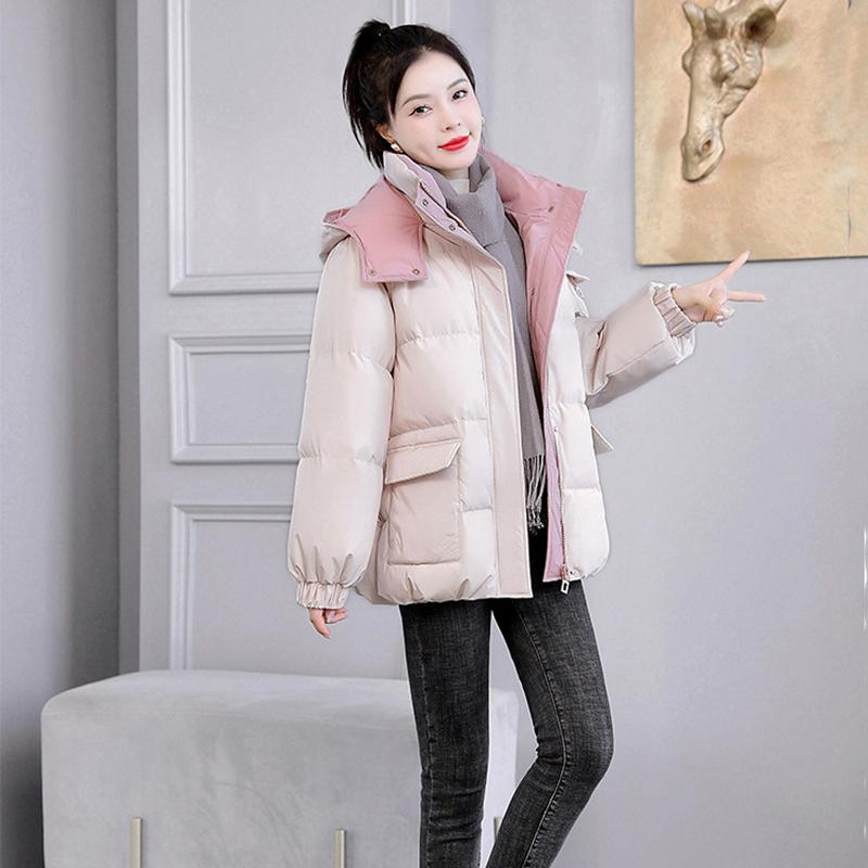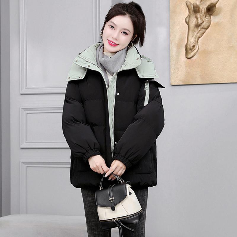 Женская утолщенная теплая парка на осень-зиму, женская повседневная однотонная свободная короткая куртка с большим карманом и капюшоном, верхняя одежда