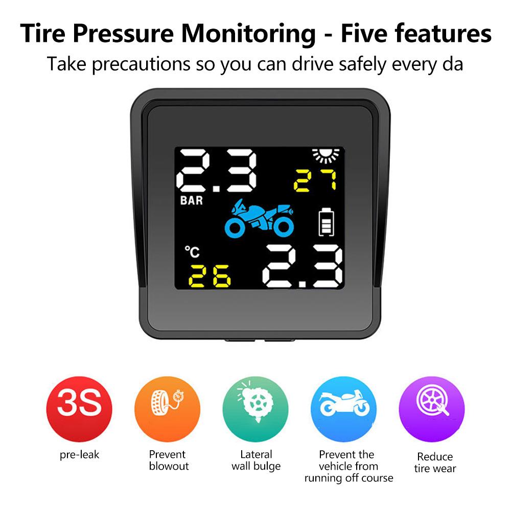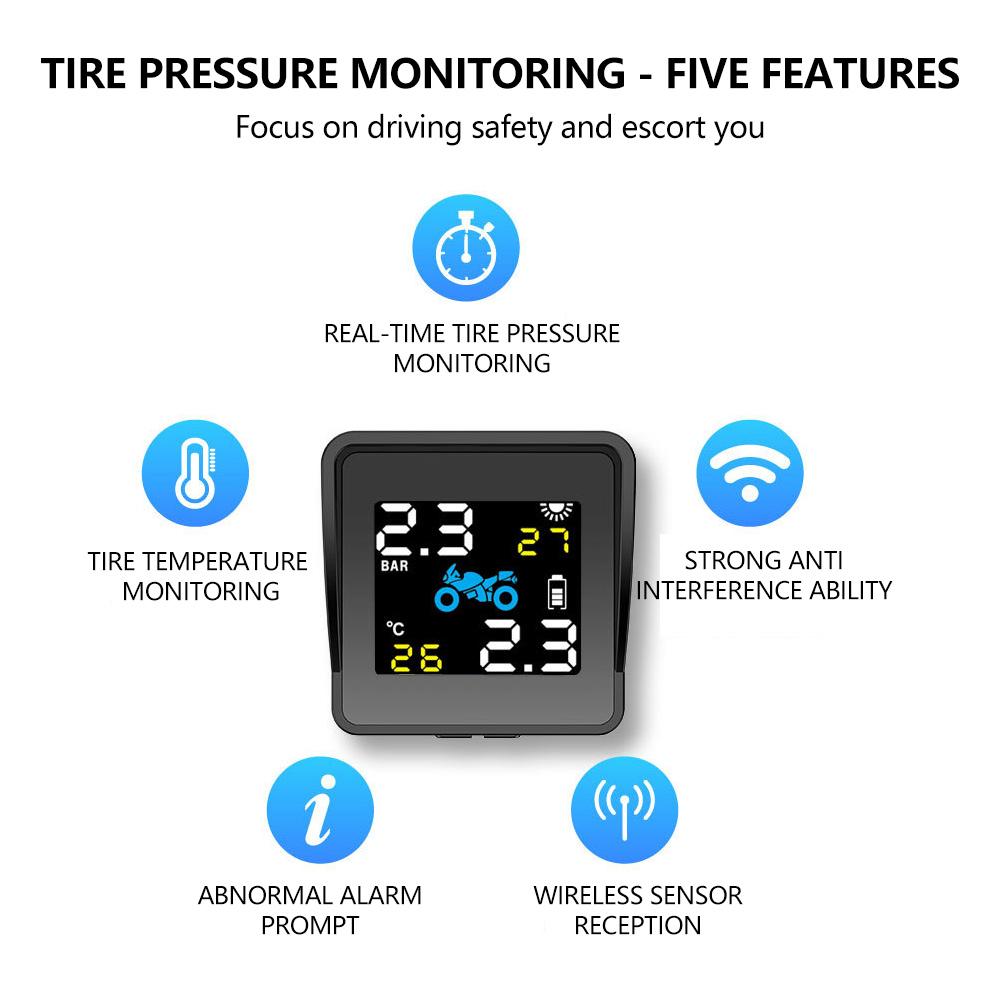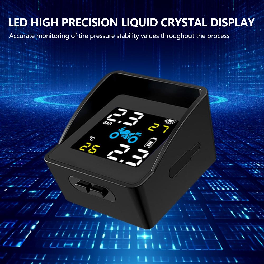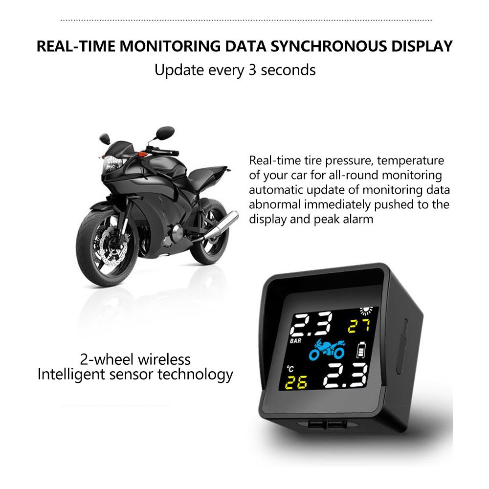 Беспроводной монитор давления в шинах Солнечный детектор давления в шинах мотоцикла Система сигнализации контроля температуры шин с 2 датчиками