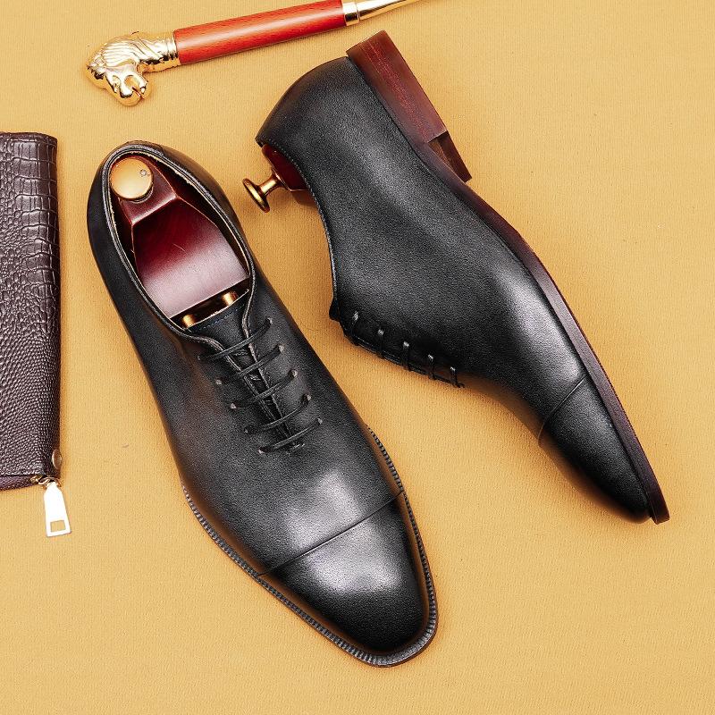 Трехсоставные оксфордские кожаные туфли мужские из натуральной воловьей кожи с острым носком для делового костюма, вечерняя одежда для мужчин