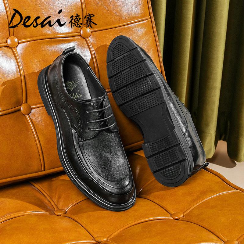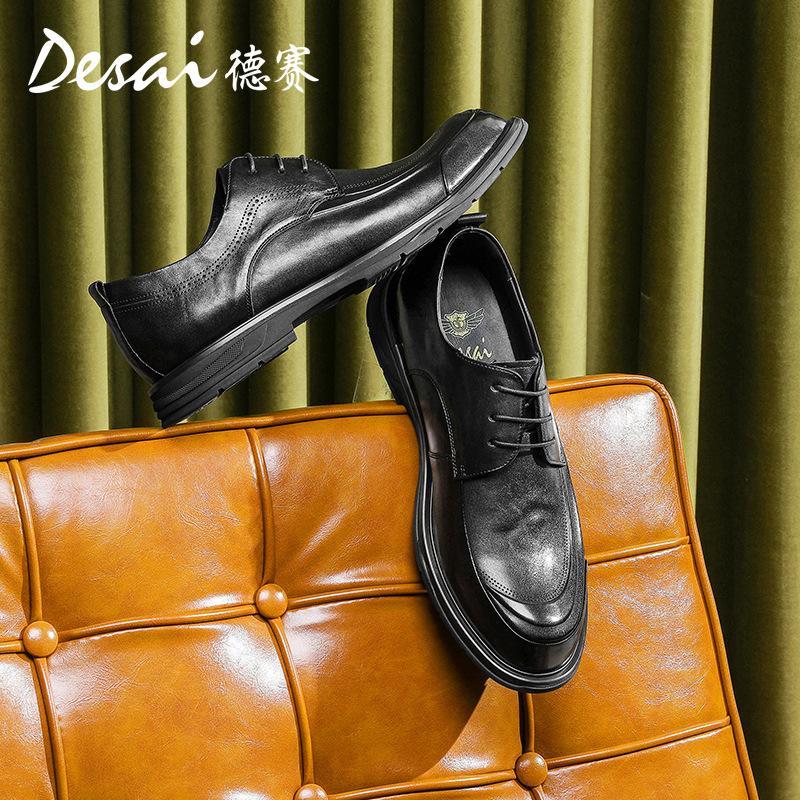 Desai British Style Мужские кожаные туфли Деловые туфли Дерби с круглым носком Из натуральной кожи Мужские туфли ручной работы в стиле ретро