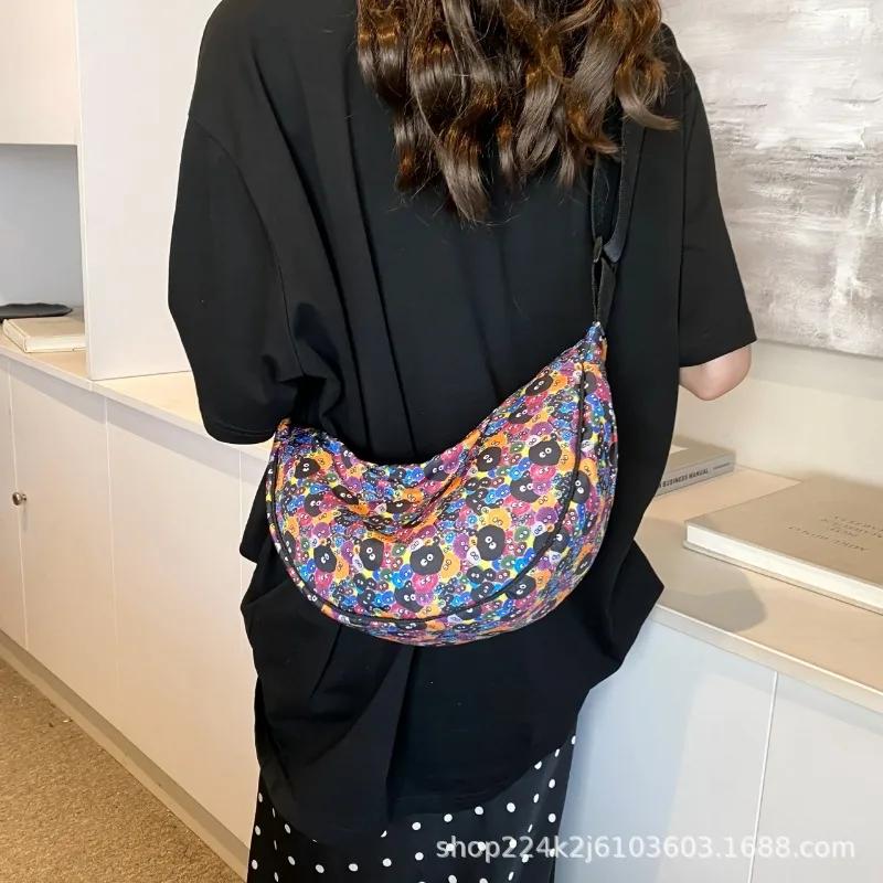 Новая сумка-мессенджер с принтом и хлопком, женская модная нейлоновая сумка через плечо, универсальная легкая повседневная сумка-пельмень