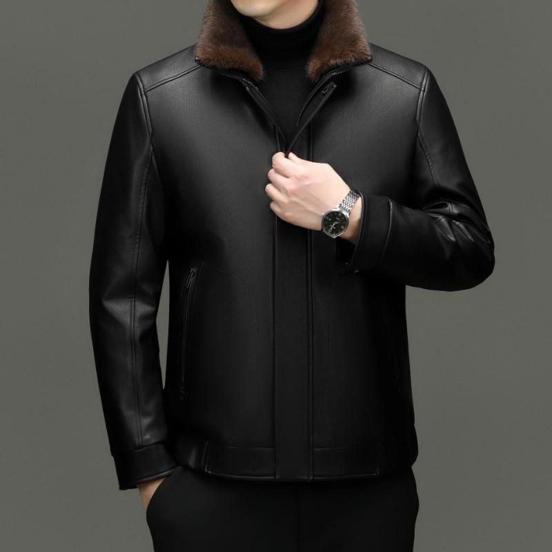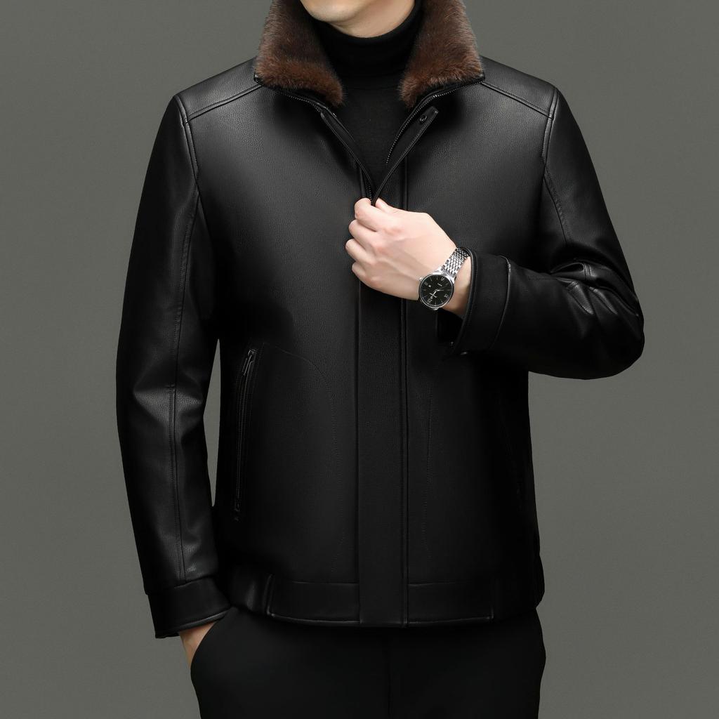 Мужская куртка из пуховой кожи Мужская зимняя куртка из натуральной кожи с бархатом Утолщенная съемная подкладка Модная теплая одежда для папы