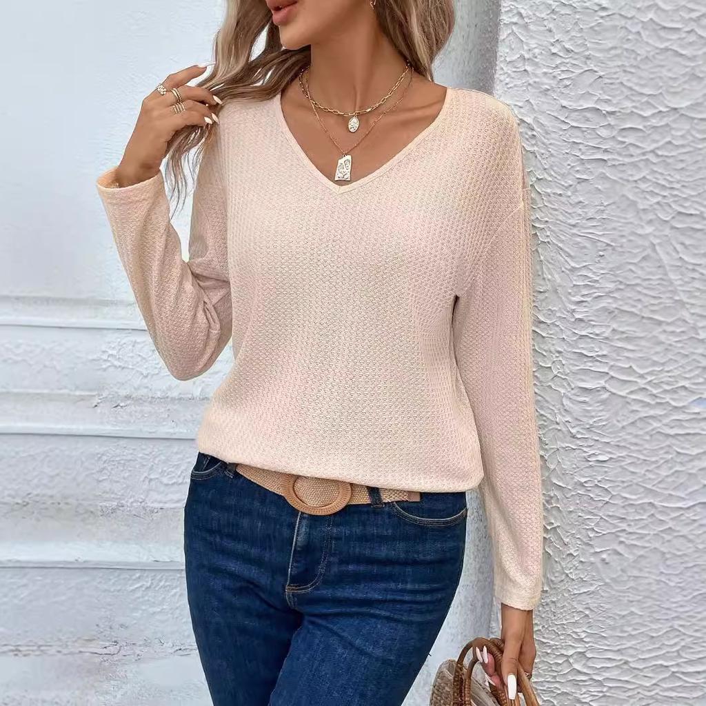 Осенне-зимняя элегантная женская футболка с V-образным вырезом, прошитая модная кружевная завязка сзади, бант, длинный рукав