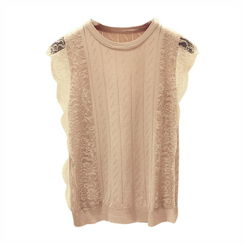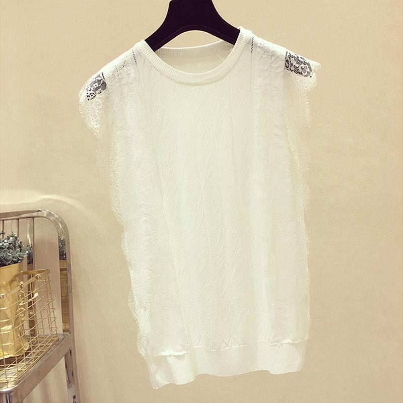 Модный летний кружевной безрукавный черный белый вязаный жилет без рукавов женский тонкий трикотажный топ с круглым вырезом жилет JJ08