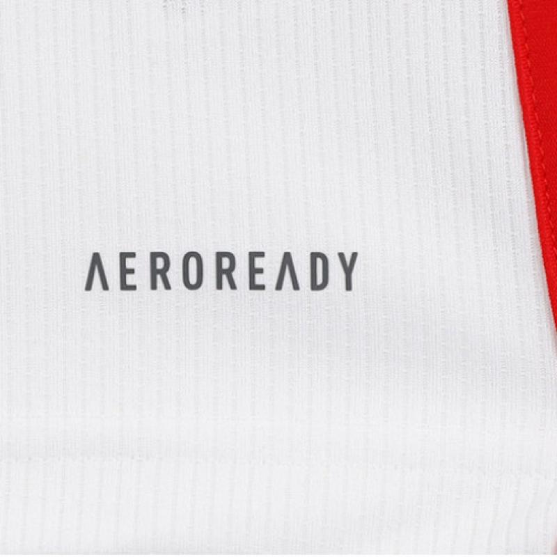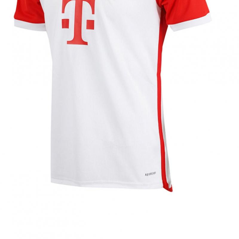 Домашняя футболка Adidas Бавария Мюнхен 2023/24. Этот приталенный дизайн изготовлен из 100% переработанного полиэстера и дополнен круглым вырезом, что обеспечивает привлекательный и стильный вид.. Материал AeroReady отводит влагу без ощущения липкости, обеспечивая комфортное ношение как на стадионе, так и на трибунах.. Логотип ФК «Бавария» Мюнхен усиливает гордость за клуб.