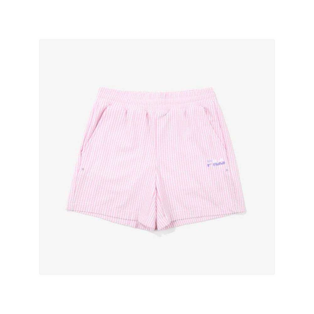 The [FILA KIDS] Seersucker 5-Section Shorts (FK2TRF2A01X_EPK) are crafted from a premium blend of materials: 56% polyester, 40% nylon, and 4% polyurethane, ensuring both durability and comfort for active children. The shorts come in a charming pale pink color (EPK) that adds a playful touch to any outfit. Available sizes range from 110 to 165, making them perfect for kids aged 4 to 15 years.