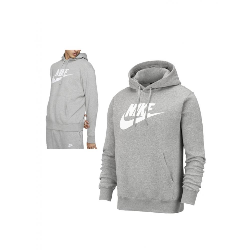 The Nike Men's NSW Club GX Fleece Pullover Hoodie (BV2973-063) combines style and comfort with its soft fleece lining and casual design. Made from a mix of 80% cotton and 20% polyester, this hoodie features a classic grey and white color scheme along with the recognizable Nike logo on the front. The kangaroo pocket provides convenience while the ribbed cuffs and hem ensure a snug fit. Perfect for winter wear, it is both functional and fashionable.