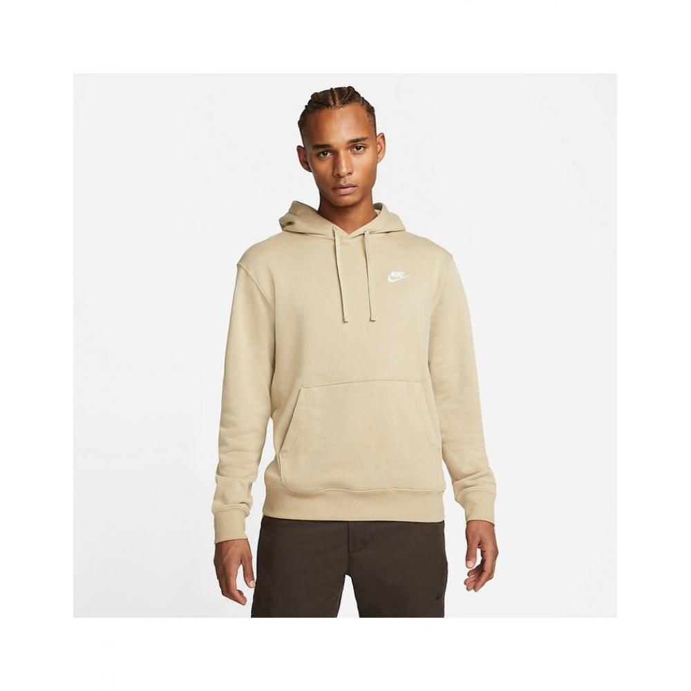 The Nike NSW Club Fleece Pullover Hoodie is designed for comfort and style. Made with a blend of 80% cotton and 20% polyester, this hoodie ensures a soft feel and durability. It features a classic pullover design with a drawstring hood and kangaroo pocket, perfect for keeping warm during chilly weather. The color scheme of Limestone/Limestone/White adds a clean and modern touch to your wardrobe.