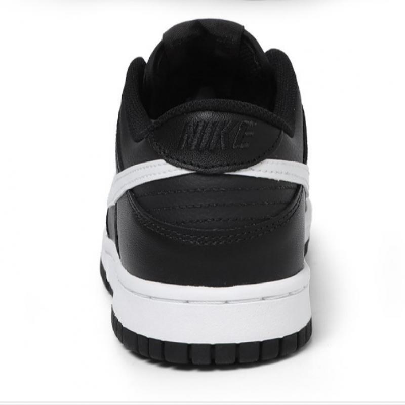 The NIKE DUNKLOW (GS) features a stylish composition of natural leather and synthetic leather. The color scheme of black, dark shadow, and white gives it a contemporary edge while maintaining the classic Dunk look.