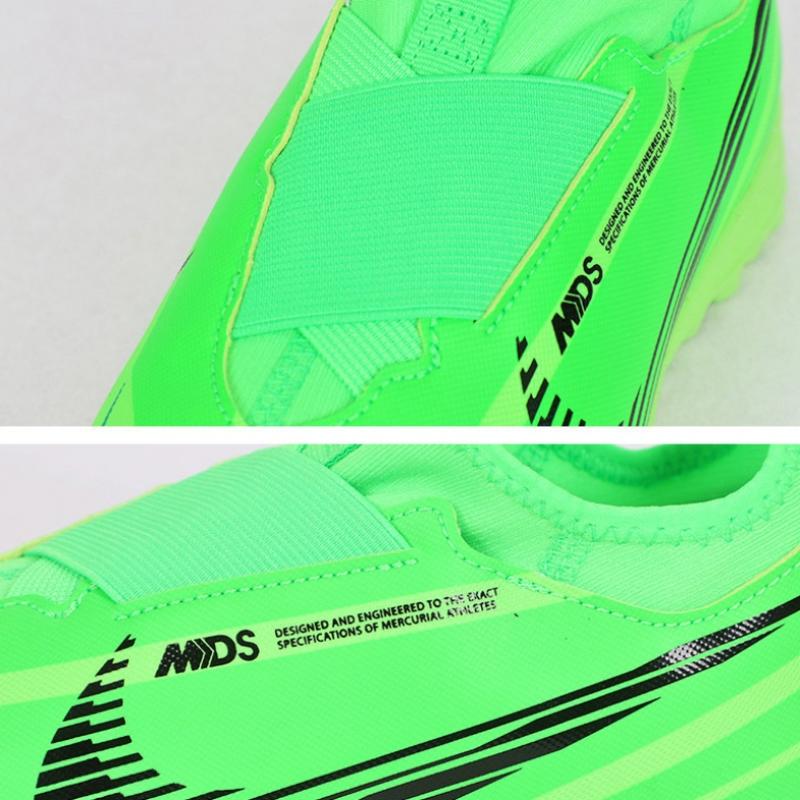 Этот продукт подходит для использования на искусственном газоне и натуральной траве. Дизайн с волнообразным узором символизирует волю к преодолению невзгод, а яркий зеленый цвет представляет моменты испытаний, с которыми сталкиваются при преодолении препятствий.. Воздушная подушка под подошвой обеспечивает комфорт и снижает усталость во время игры. Кроме того, отсутствие шнурков позволяет легко надевать обувь.