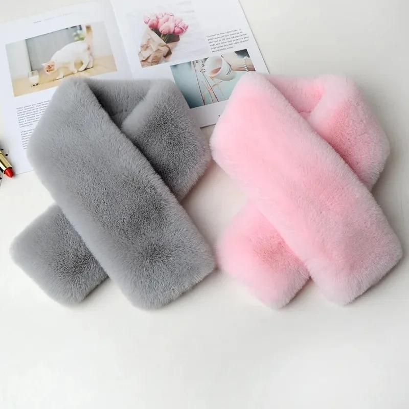 Детский двухсторонний бархатный утолщенный флисовый шарф в корейском стиле с искусственным мехом, теплый шарф с меховым воротником на осень и зиму