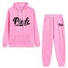 Осенне-зимний женский спортивный костюм, пуловер с капюшоном, комплект из двух предметов, толстовка с принтом букв + спортивные штаны на шнурке, повседневная одежда