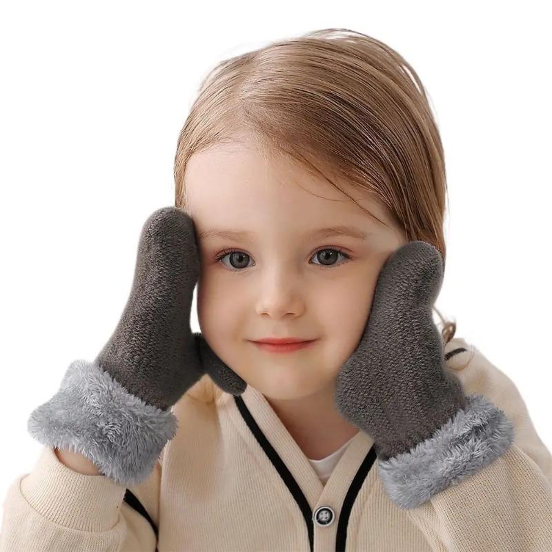 Зимние шерстяные вязаные перчатки для мальчиков и девочек, теплые плюшевые толстые варежки с полным пальцем, перчатки для детей от 1 до 3 лет