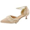 Сексуальные кружевные тонкие каблуки свадебные туфли женские 2024 новые туфли-лодочки с ремешком на щиколотке и жемчужинами женские элегантные туфли на среднем каблуке с ниткой и бусинами для вечеринок