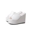 Летние лаконичные кожаные туфли на танкетке с открытым носком, сандалии, женские туфли на платформе и каблуке 12 см