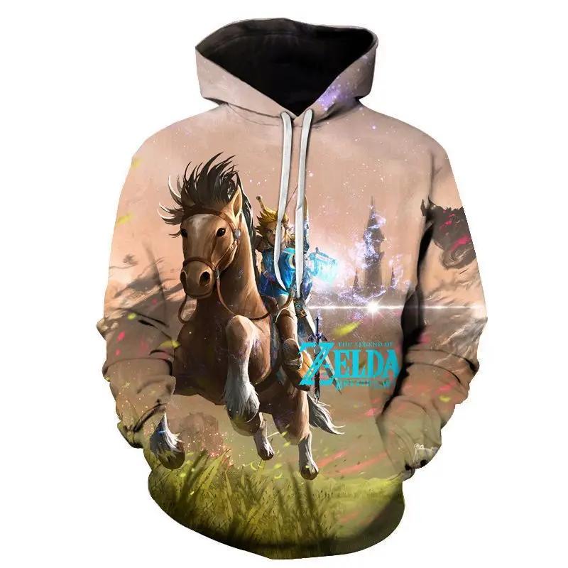 Косплей Легенда Zelda Link Толстовки с капюшоном на молнии Топы Куртки Аниме 3D Принт Толстовка для взрослых Мужское пальто Модная уличная одежда