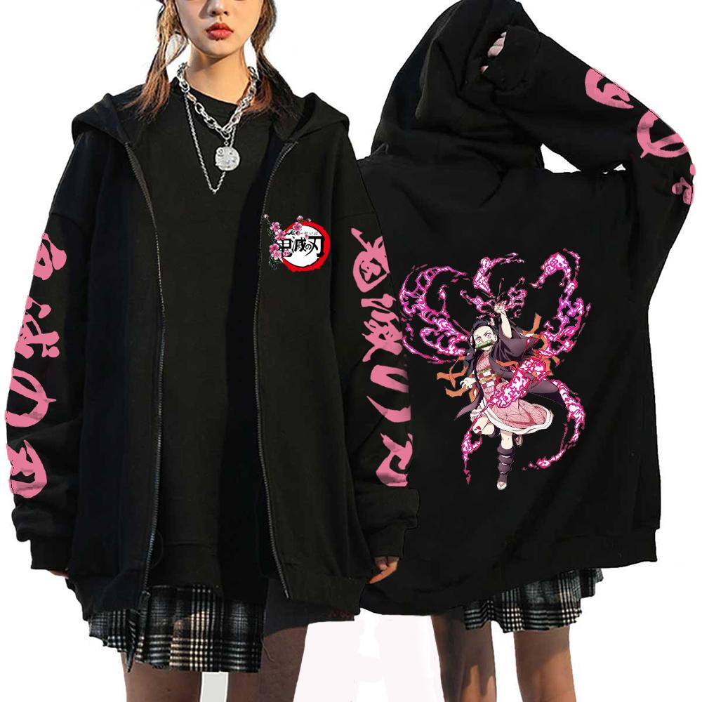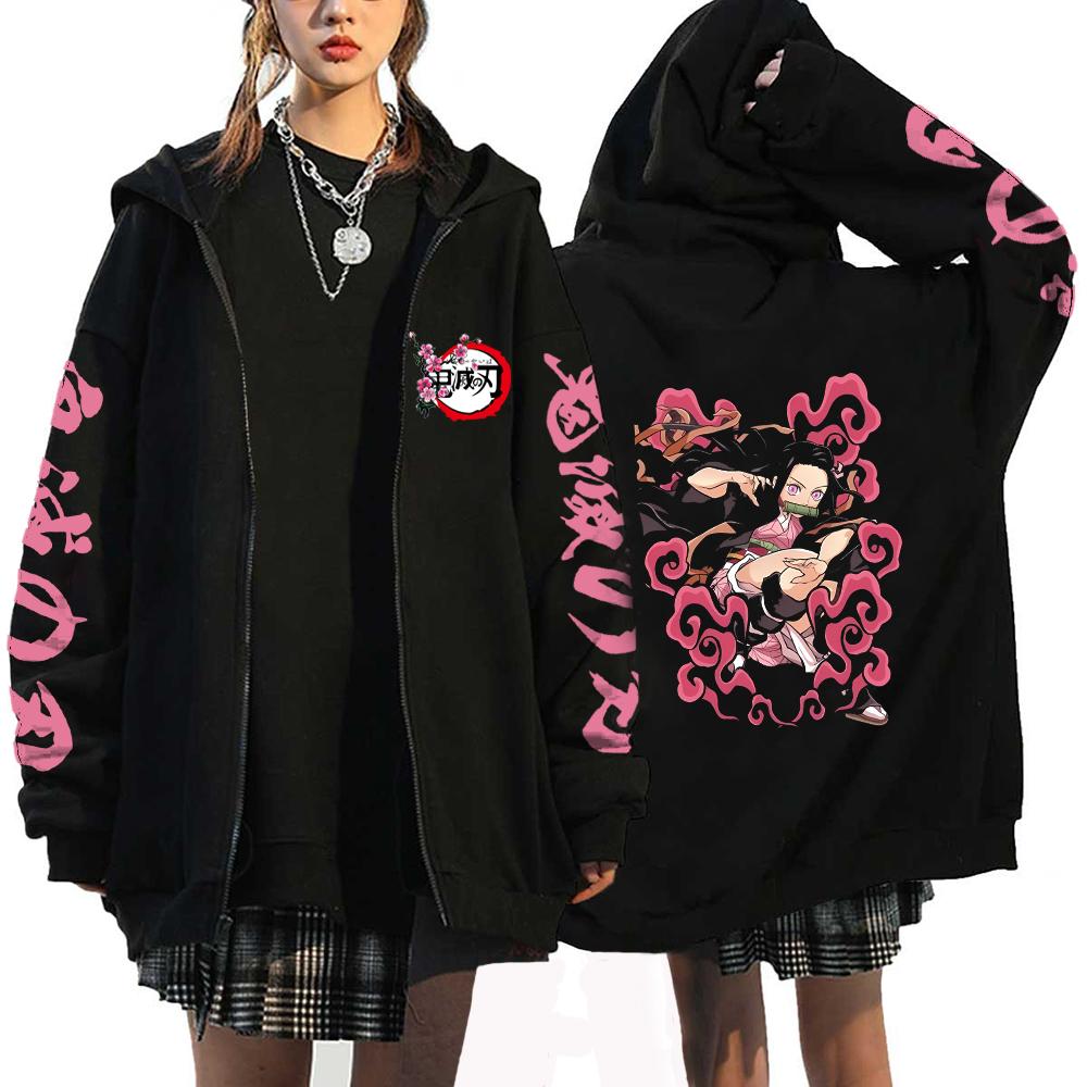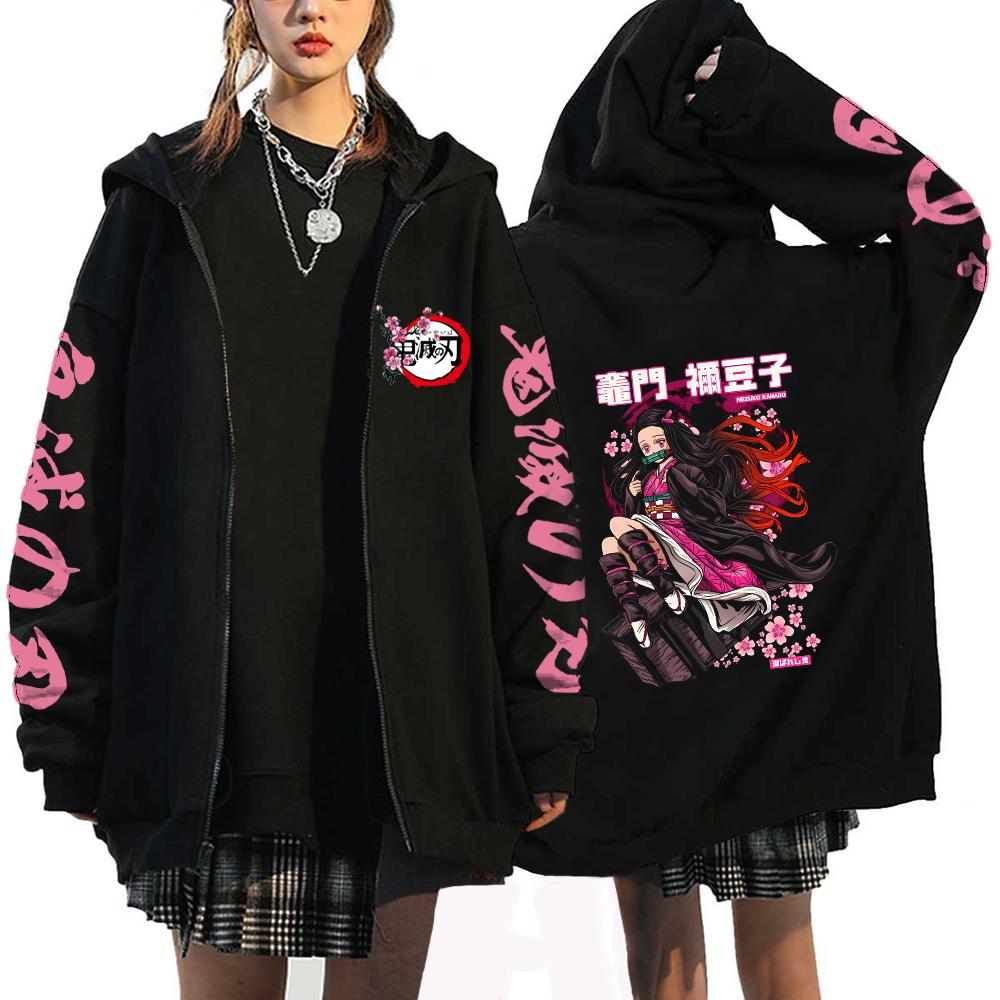 Demon Slayer Япония Аниме Женские толстовки Kamado Nezuko Большие размеры Осенние куртки на молнии Пуловер с капюшоном для девочек Толстовка на молнии
