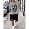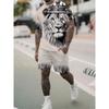 2024 Новый комплект из двух предметов: футболка с круглым вырезом и коротким рукавом, модные шорты с принтом льва 3D, шорты с коротким рукавом, мужской летний спортивный комплект из 2 предметов