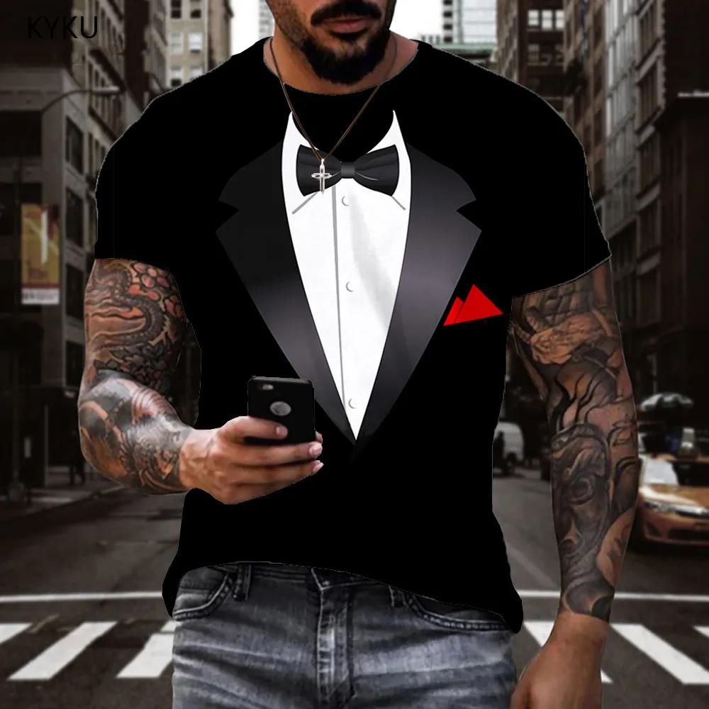 3D футболка с коротким рукавом с бабочкой для мужчин, смокинг, повседневная футболка с ретро-принтом, поддельный костюм, 3D забавная футболка, модная мужская