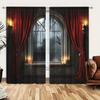 2 шт., Красная занавеска Ночь Готический замок Карманные цифровые печатные шторы, полиэстеровый материал, подходит для гостиной, кухни