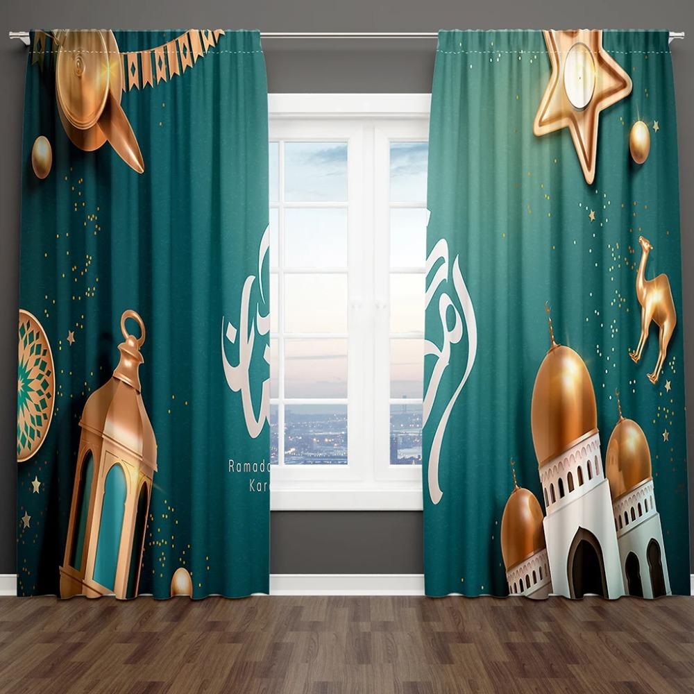 Бесплатная доставка Роскошные исламские шторы на окна Рамадан Карим для гостиной, спальни, ванной комнаты, кухни, двери, домашнего декора, 2 шт.