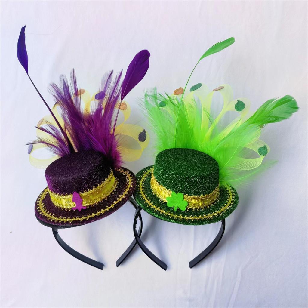Карнавальный обруч с перьями Ирландская фетровая шляпа для вечеринки Фиолетовый, фиолетовый, желтый и зеленый обруч для волос Украшение для волос