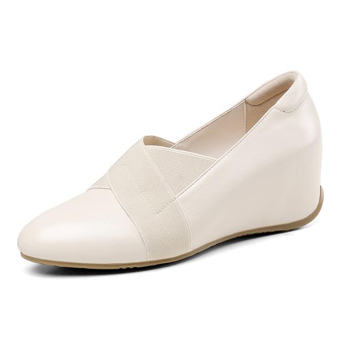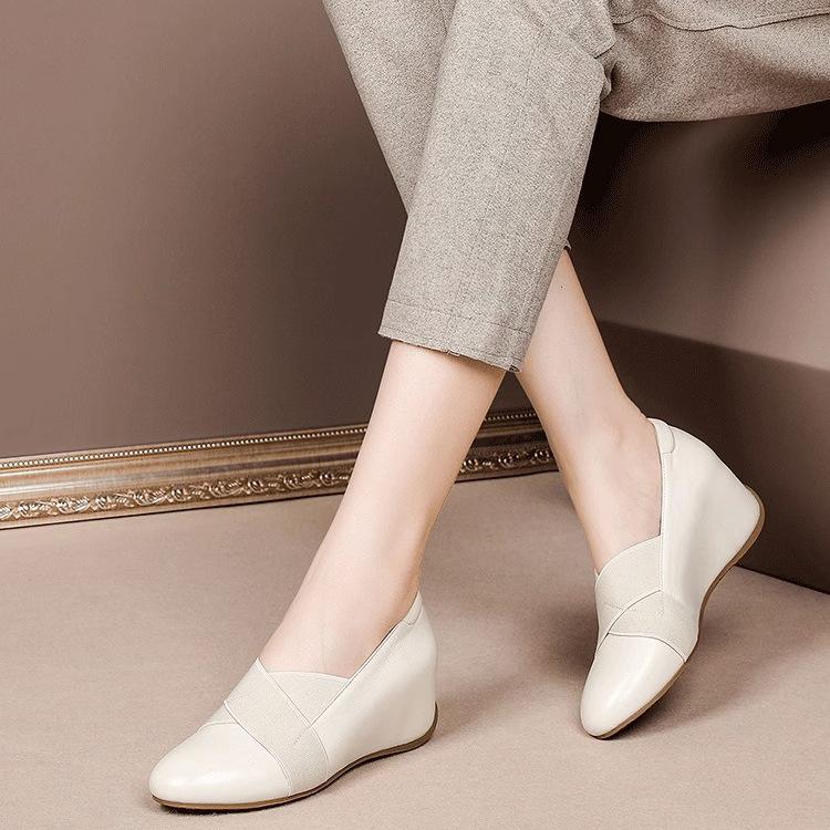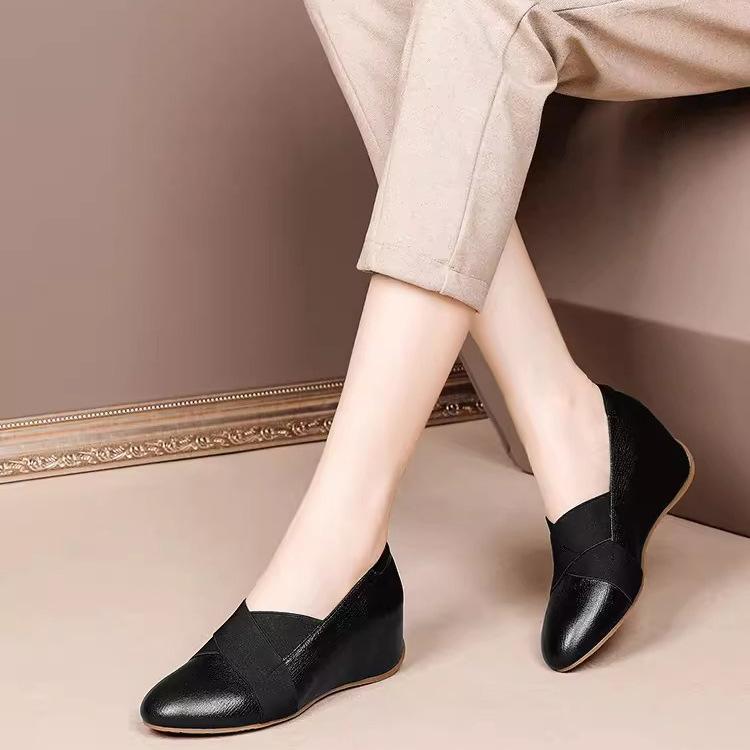Туфли на танкетке для мамочек в британском стиле с плоским дном и круглым носком, модные туфли на высоком каблуке для женщин, маленькие кожаные туфли, увеличивающие внутреннюю высоту, ленивые туфли