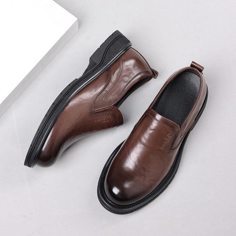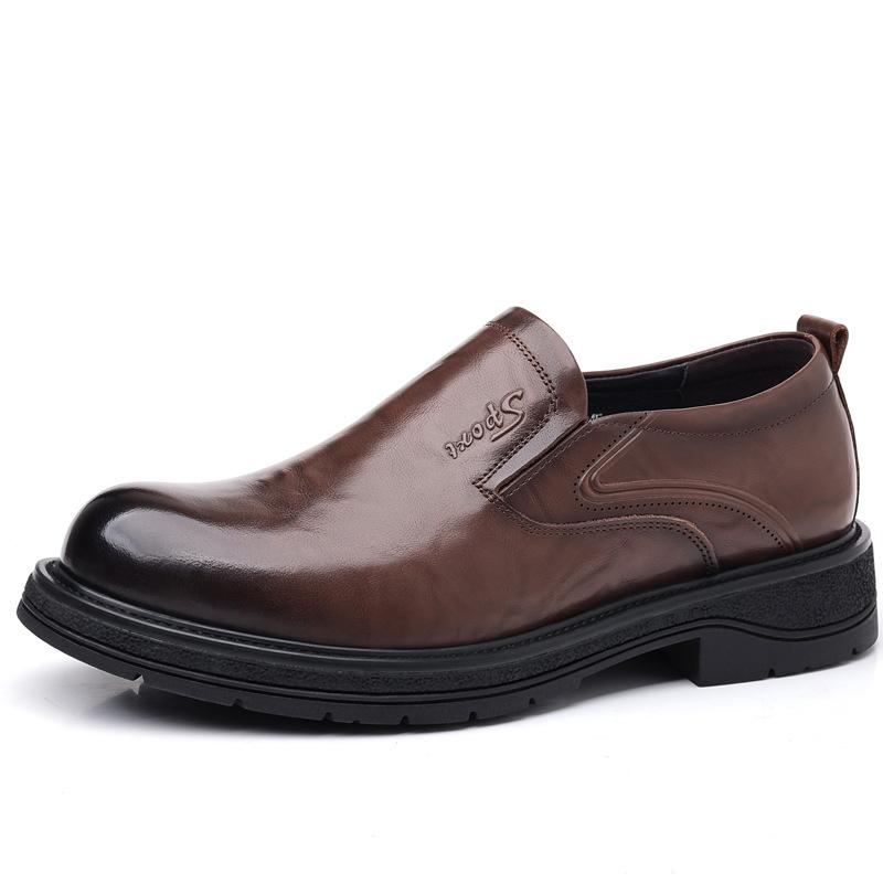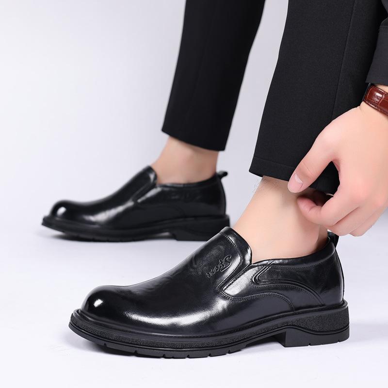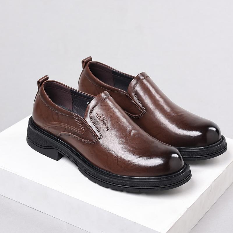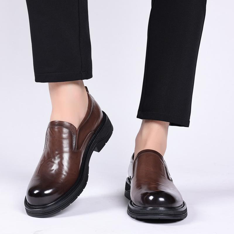 Мужские деловые и повседневные туфли из кожи с большой головкой. Мужские формальные туфли из натуральной кожи на толстой подошве. Нескользящая и износостойкая обувь.