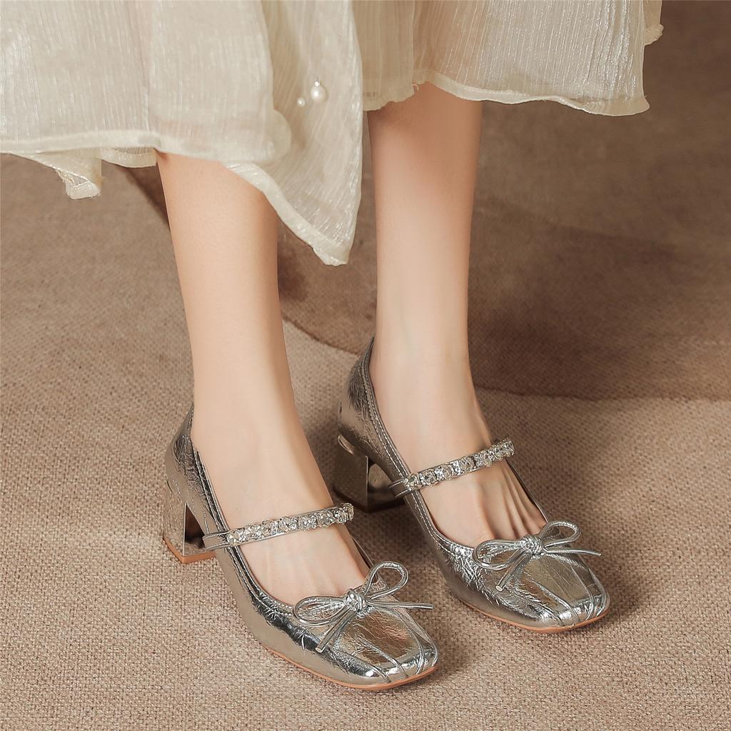 Знаменитые серебряные туфли Мэри Джейн, женские туфли с бантом на толстом каблуке, маленькие кожаные туфли, летние брюки-кюлоты, высокие каблуки — купить товар онлайн с бесплатной доставкой по всему миру!