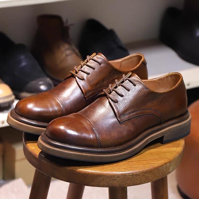 Кожаные дышащие универсальные деловые повседневные кожаные туфли мужские с круглым носком на шнуровке на толстой подошве износостойкие синие туфли дерби — купить товар онлайн с бесплатной доставкой по всему миру!