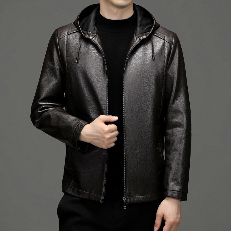 Мужская кожаная куртка весна-осень новое пальто деловое повседневное с капюшоном из натуральной кожи овчина куртка для папы