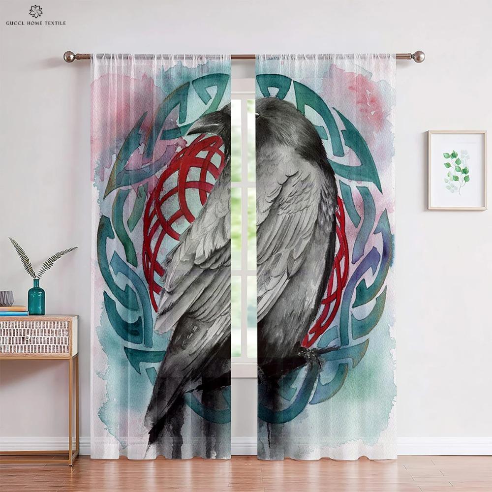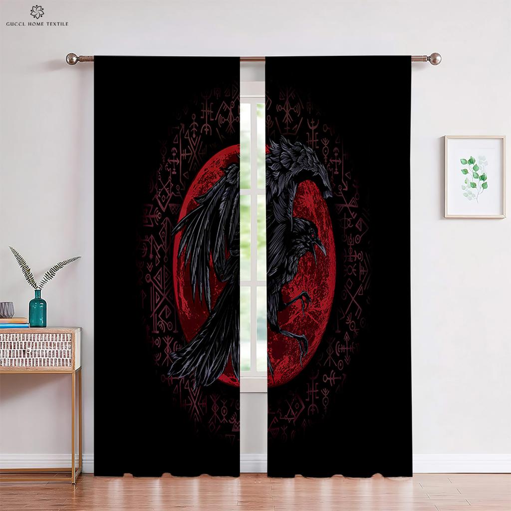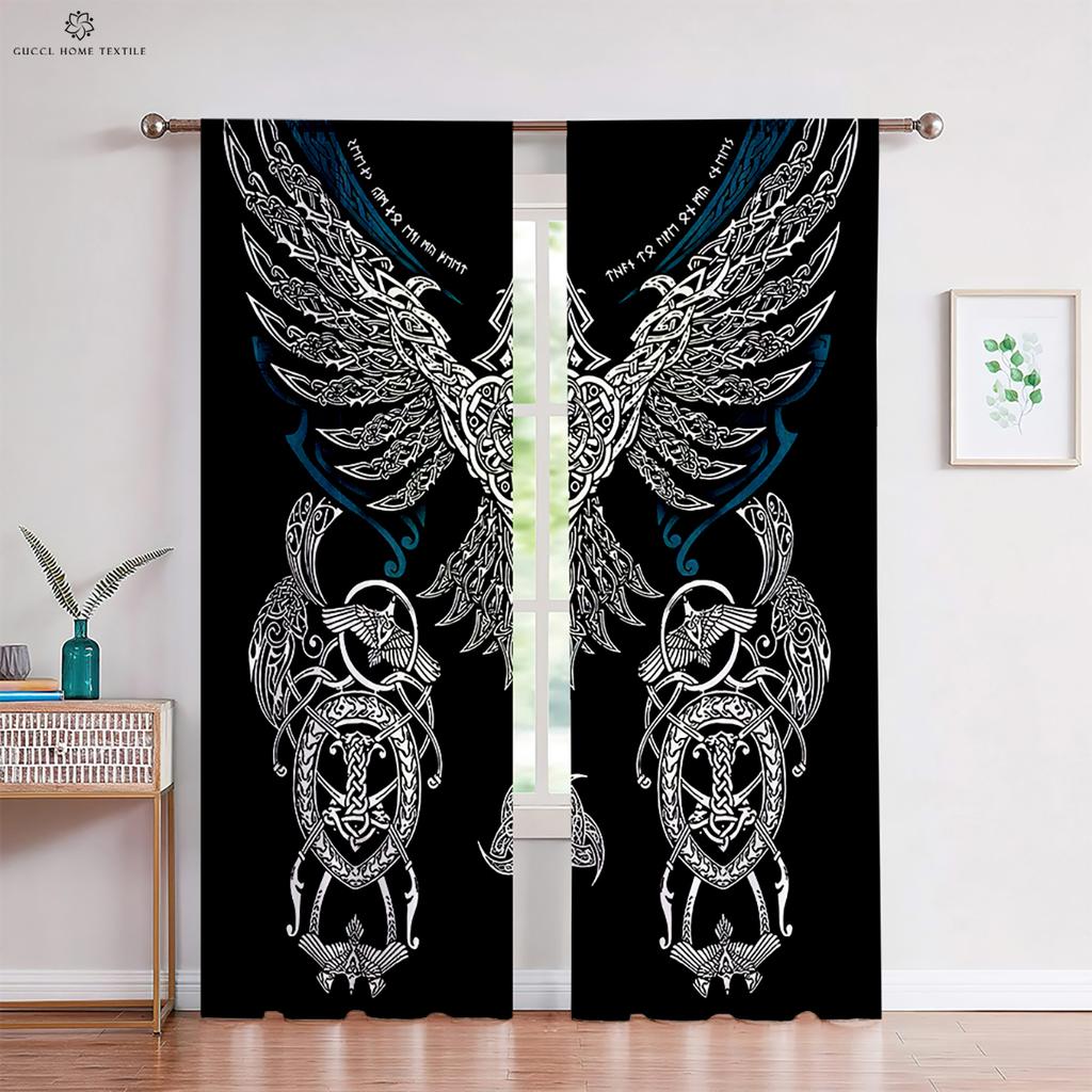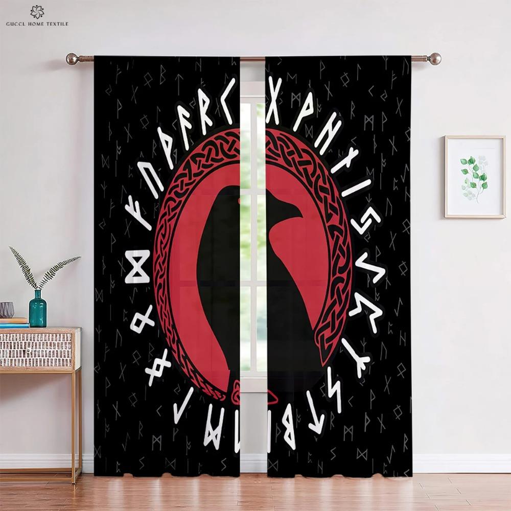 Шторы в темном стиле с узором «Руны» в стиле ретро, принт «Щит викингов», для детской комнаты, гостиной, украшения кухни, 2 шт.
