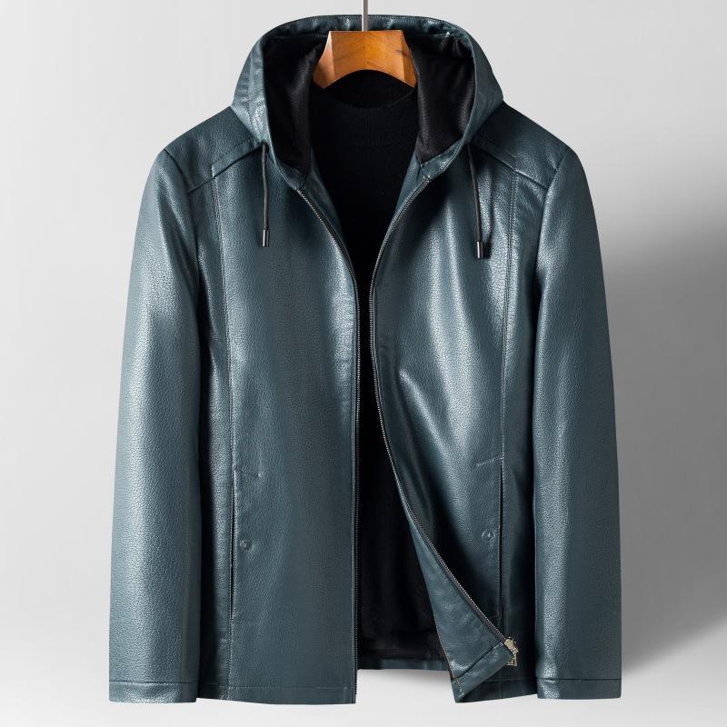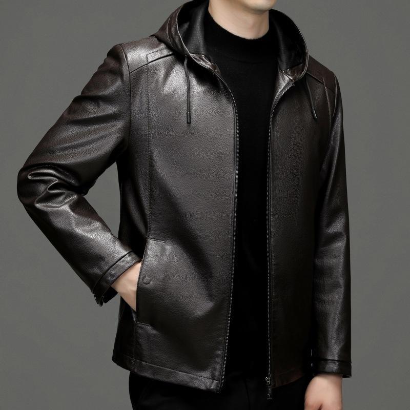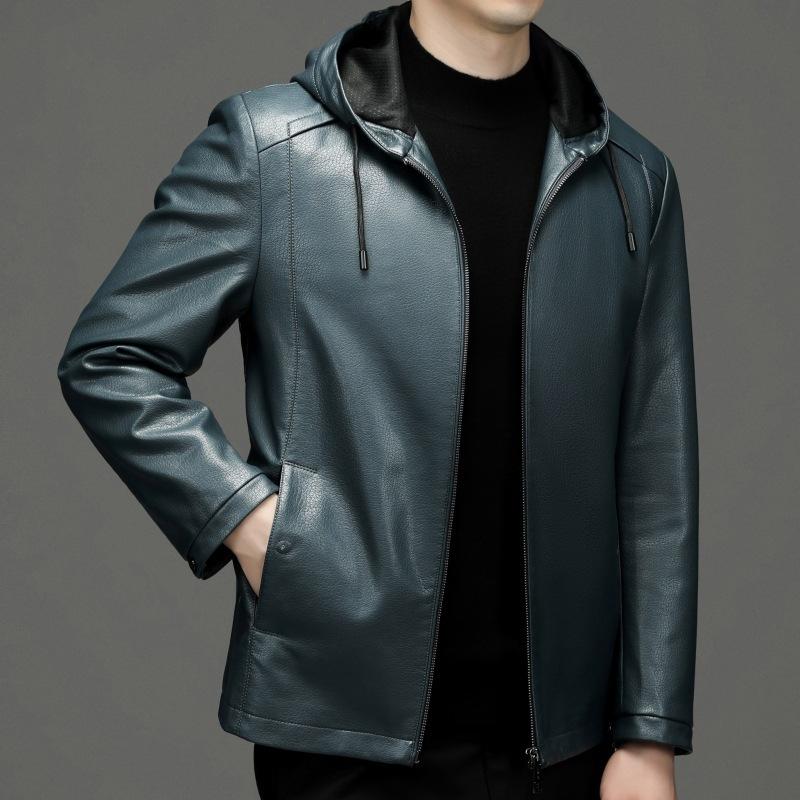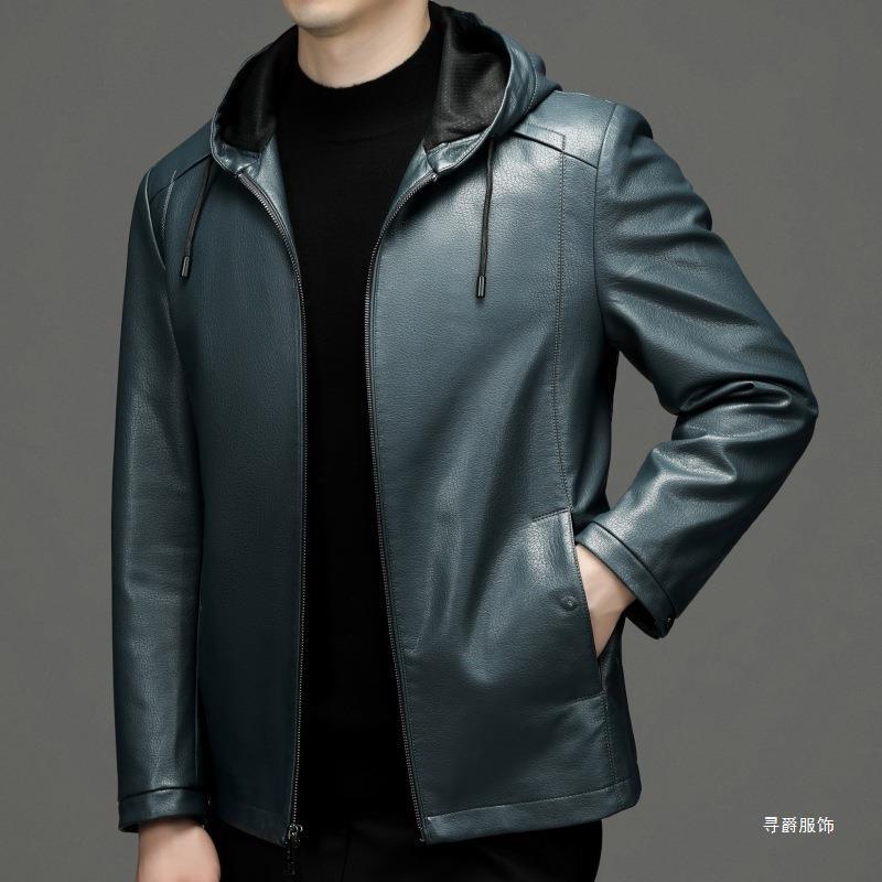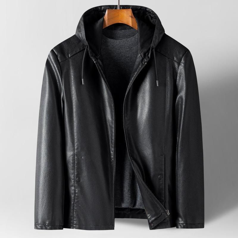 Кожаная куртка мужская красивая повседневная кожаная куртка с капюшоном для папы среднего возраста осенне-зимняя мужская куртка из овчины
